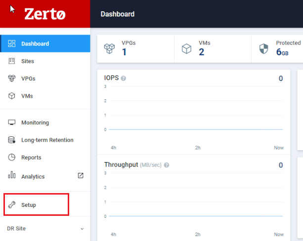 To transfer replication to another ESXi host, go to the Zerto Portal and then to the Setup section where all VRAs are located: