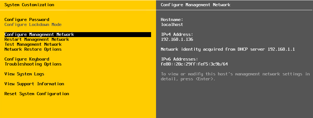 9. Finally, in main screen of Configure Management Network press Esc and Y to confirm host reboot and apply changes.