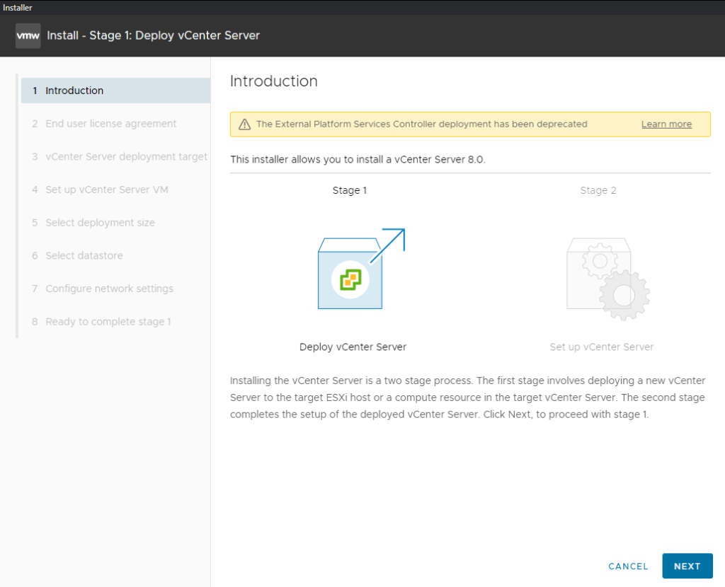 vCenter Server 8.0 is another component of the new vSphere 8 released in late 2022. Since I already have ESXi 8.0 deployed, it’s time to deploy the new vCenter in my home lab. If you already have vCenter 7.0 installed, you can upgrade to vCenter 8.0 using the following guide: