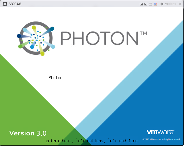 Log in to the ESXi web GUI, select VCSA VM and from the Console menu select Open browser console. A console window will pop-up.