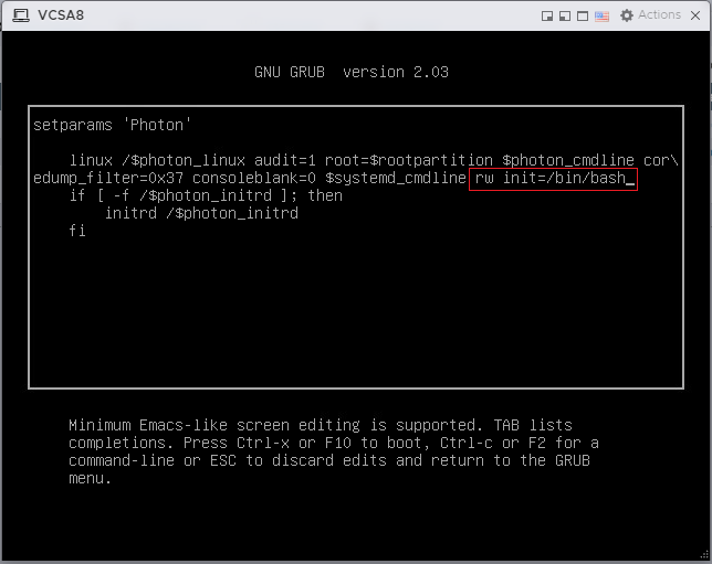 Resetting root password in vCenter Server Appliance