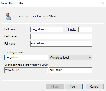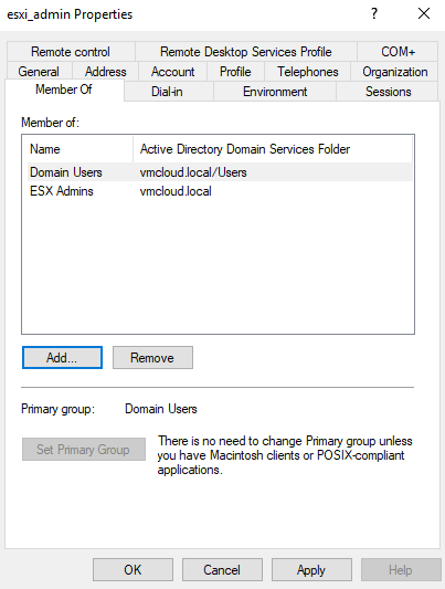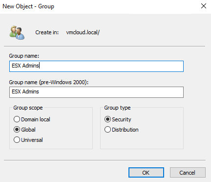 3. Type group name ESX Admins and click OK.
