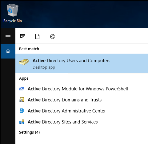 1. Log on to the domain controller and open Active Directory Users and Computers.