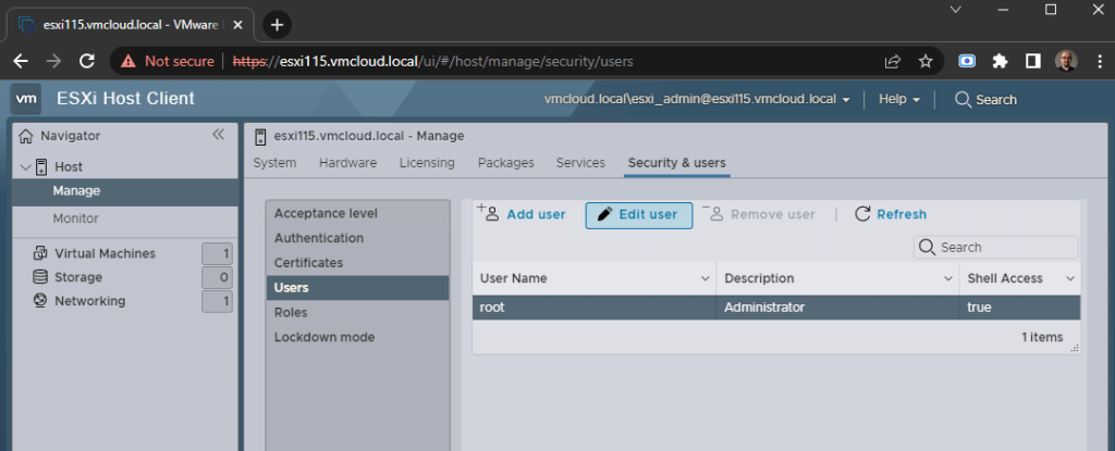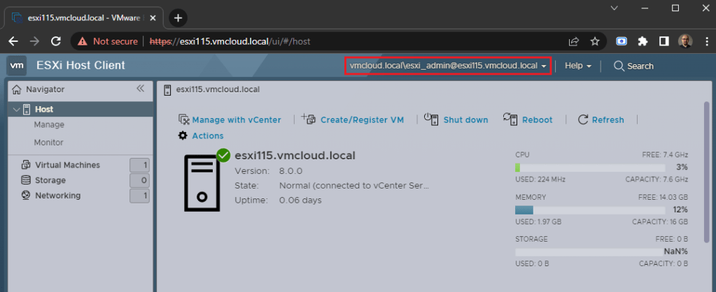 11. Now you can access ESXi using domain account. Go to your ESXi web GUI and login with created domain account.