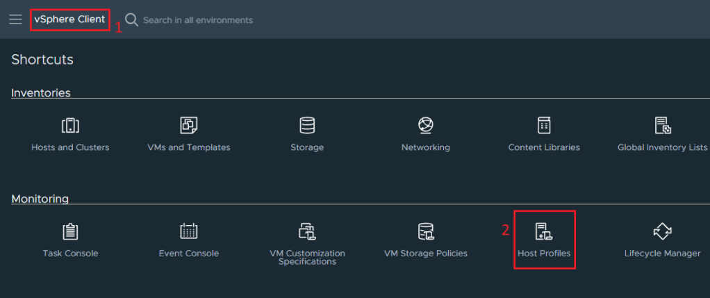 3. Now click on vSphere Client and then Host Profiles.