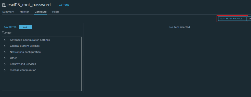 5. Go to Configure tab and click on Edit host profile.