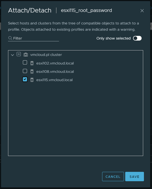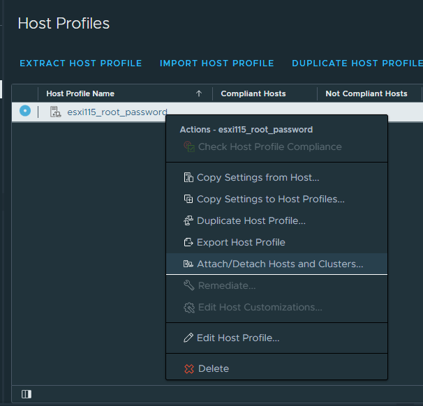 8. In Host Profiles, right-click on your host profile and choose Attach/Detach. Select to which ESXi host attach the profile and click Save.