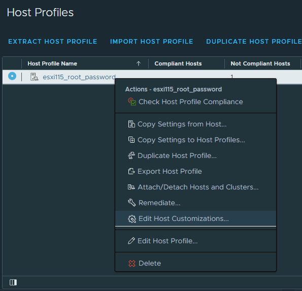 9. In Host Profiles section, right-click the host profile and choose Edit Host Customizations.