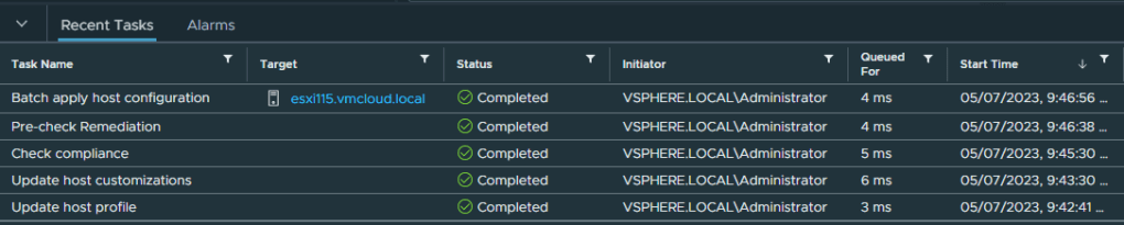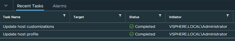 If the task was successful, you changed the root password using the host profiles.