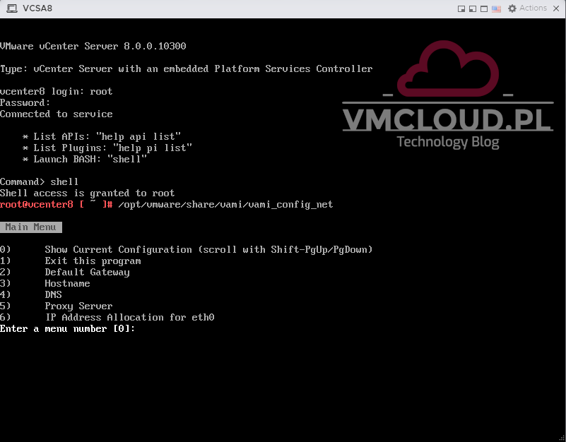 3. As you can see, there are few options to choose. If you want to change the IP address of your vCenter Server Appliance, go for option 6 and hit Enter.