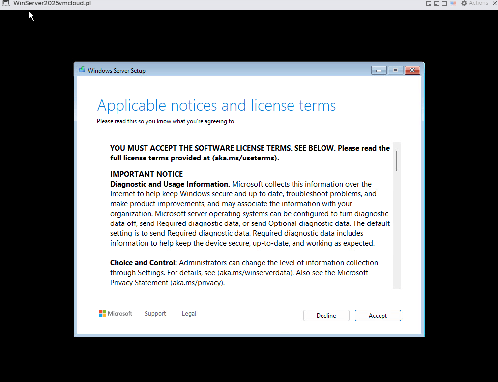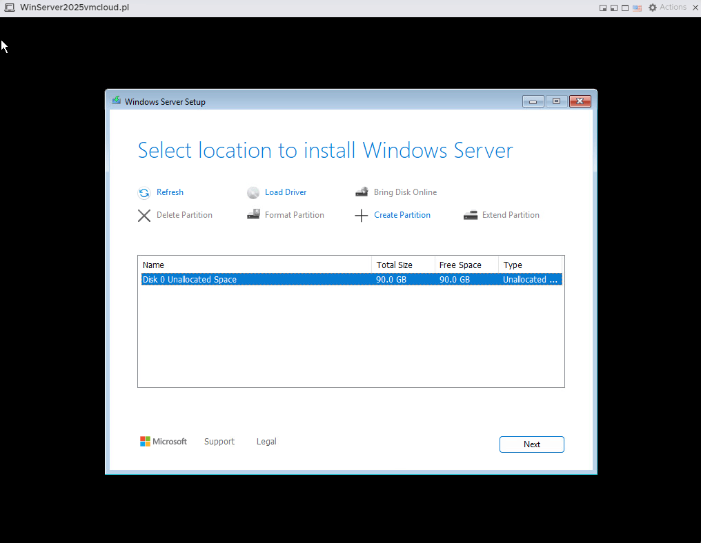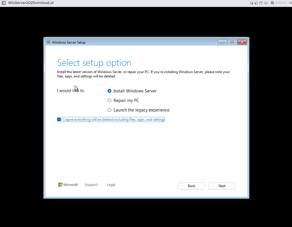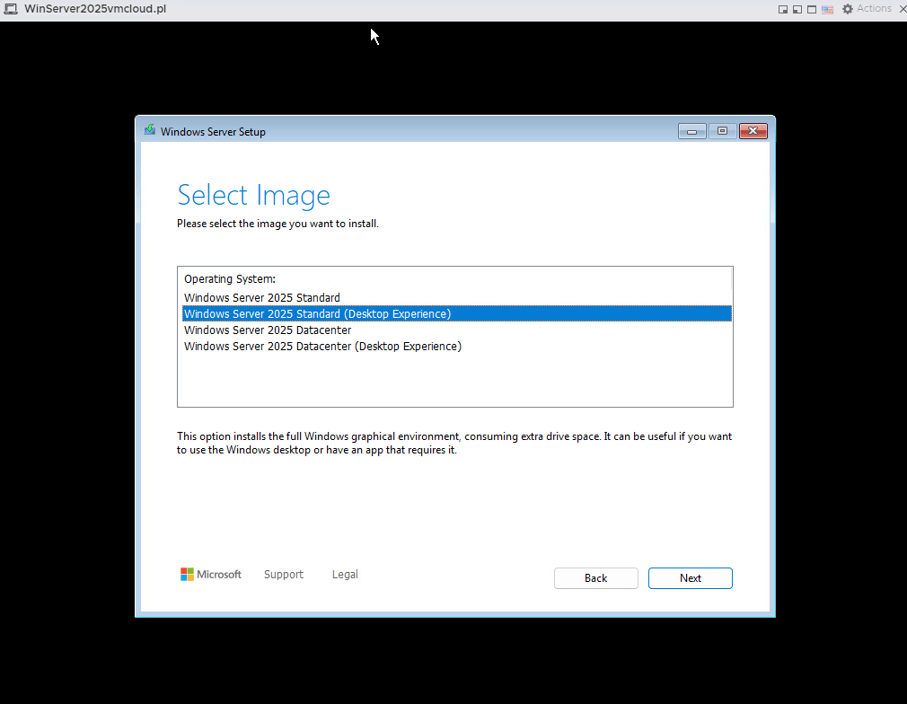 2. Type name of your VM and select the OS. Windows Server 2025 is available in drop-down list.