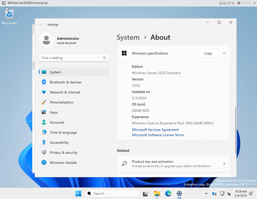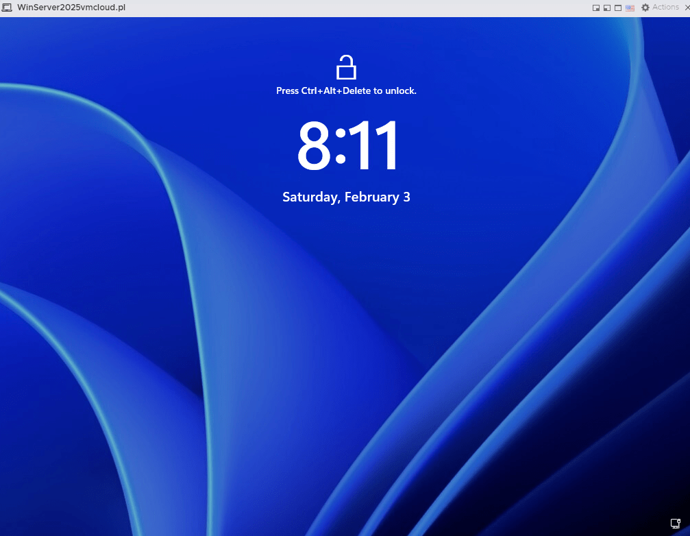 And finished! Windows Server 2025 is installed, press Ctrl+Alt+Delete to unlock and login.